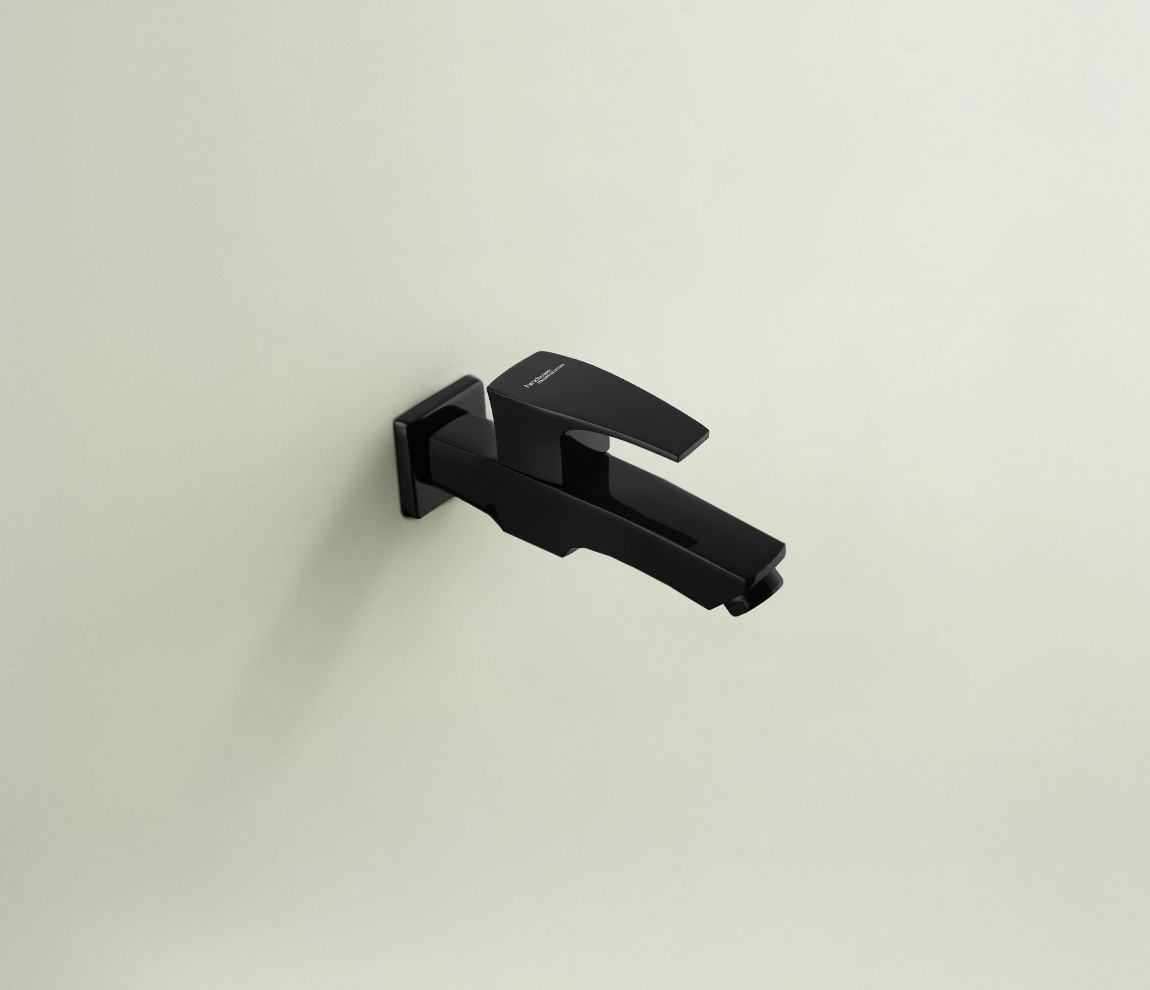 Avior Bib Cock with Wall Flange - Chrome Black by Hindware is currently priced at ₹6150 on Build Bharat Mart, including all taxes. Free delivery applies on orders above ₹999; below that, ₹30 standard shipping.