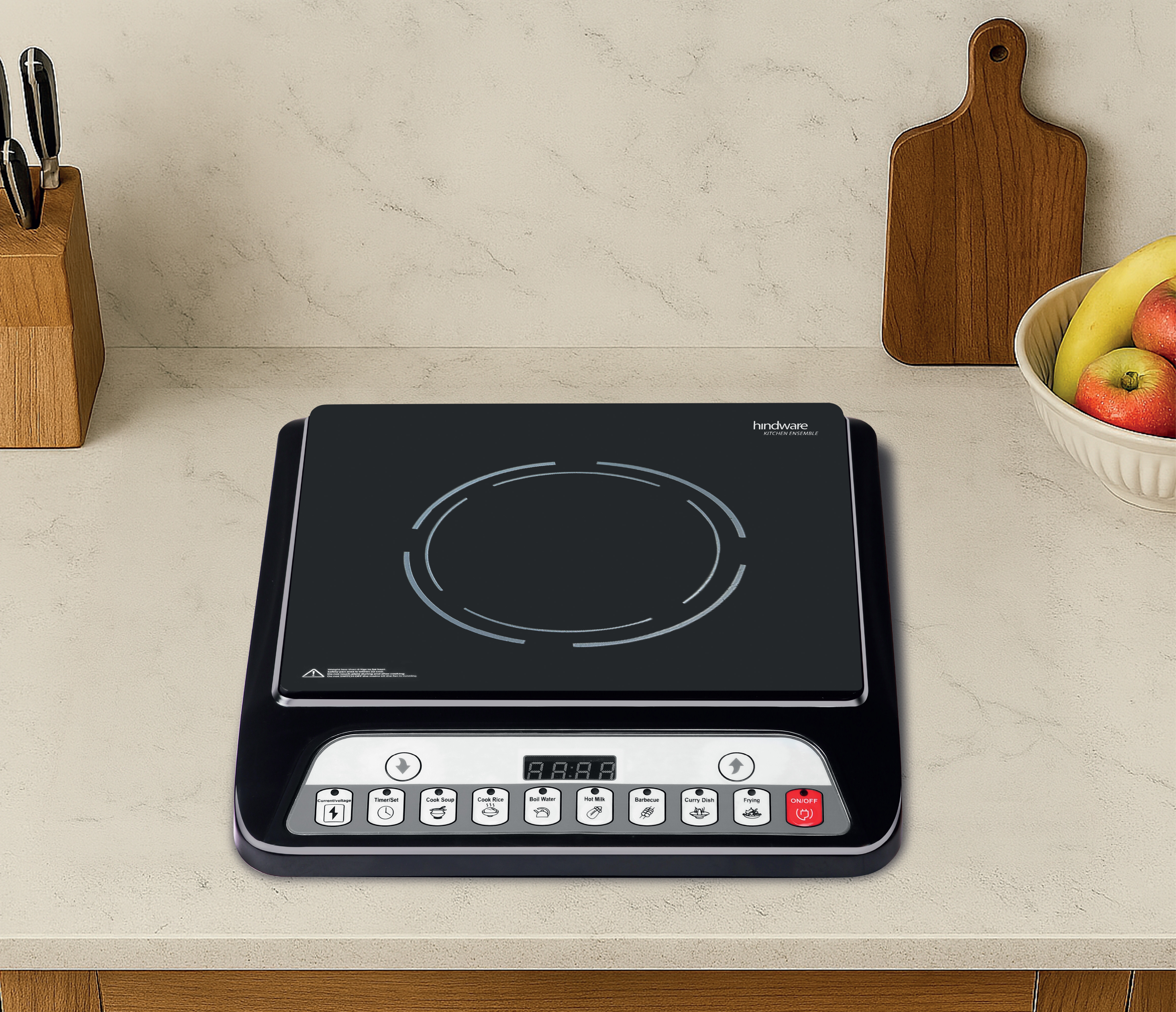 1400W Power: Delivers rapid heating for faster cooking, boiling, and searing, significantly cutting down meal prep time. 7 Cooking Functions: Offers versatile pre-set options for various dishes, simplifying your cooking and ensuring perfect results every time. Push Button Operation: Provides simple, tactile control for quick and easy function selection and adjustments. Digital Display & Timer: Offers clear, precise real-time feedback and a convenient timer for effortless monitoring