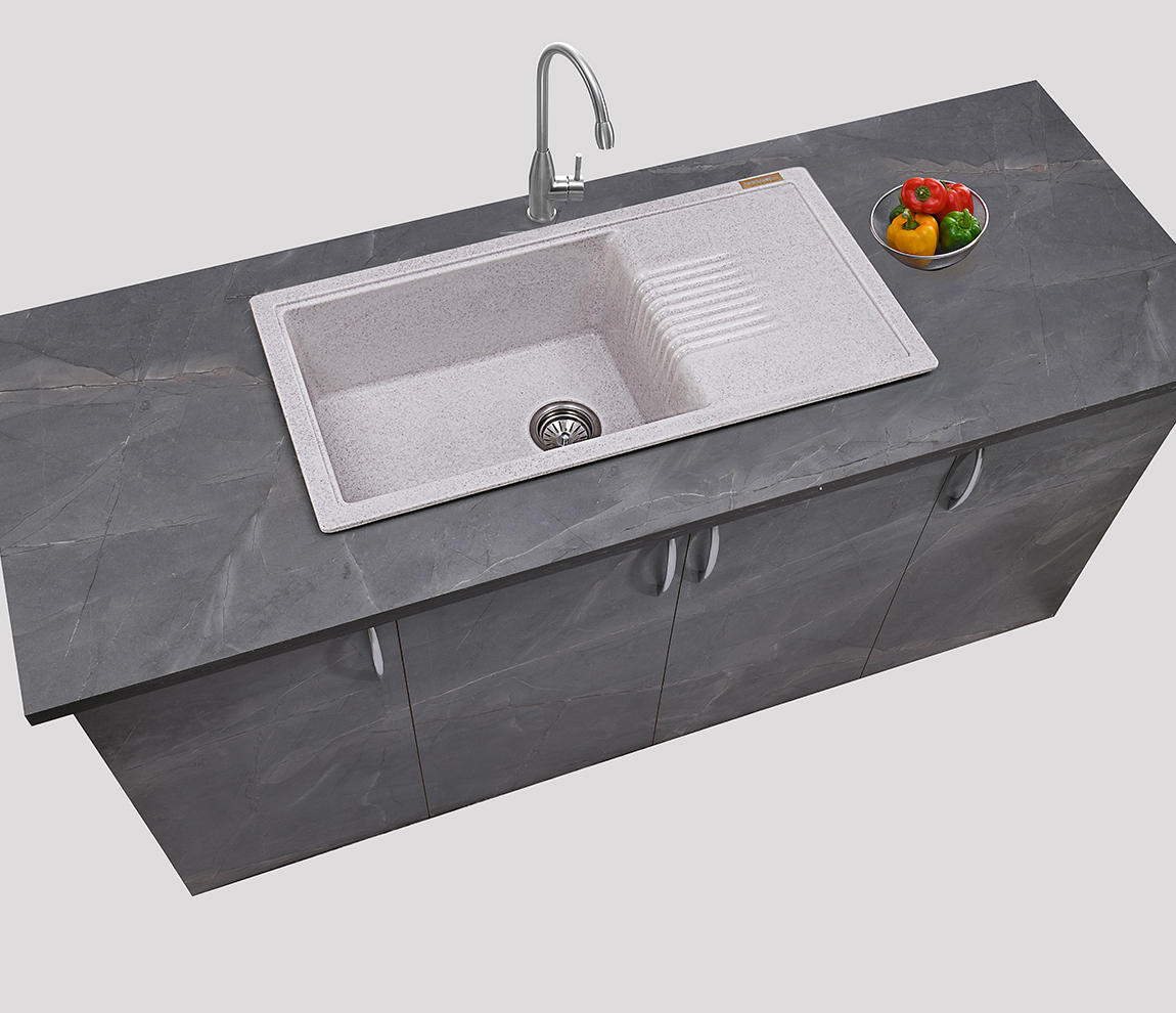 Each unique sink is a work of art. Meticulously crafted by artisans, they blend custom design with exceptional durability and modern style Dual Sound Absorption : High-quality, sound-deadening pads reduce noise and vibrations for a more peaceful kitchen. Clean Drain Coupling : A small basket filters food waste, making your washing process more hygienic and cleanup effortless. Scratch Resistant : Engineered to withstand daily use, this surface powerfully resists scratches, ensuring a flawless look that lasts for years Heat Resistant : Designed to handle high temperatures, our surfaces resist heat damage, maintaining their pristine condition even with hot pots and pans Matt Finish: A subtle and sophisticated look, perfect for a modern, minimalist kitchen aesthetic.