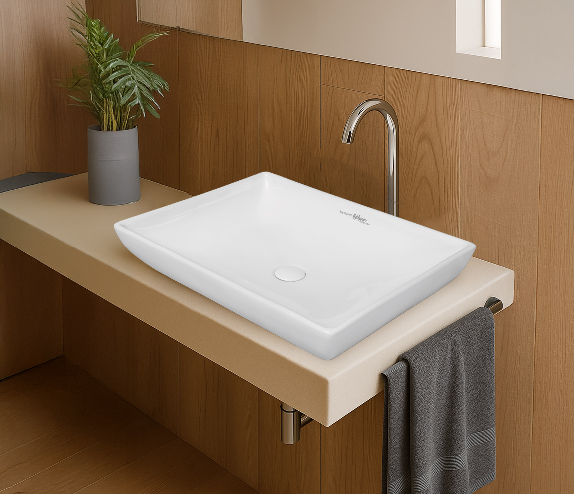 Fonte Over the Counter Basin is a harmonious blend of contemporary design and robust functionality, making it an ideal choice for modern bathrooms. Its sleek rectangular shape and high-gloss finish not only enhance the aesthetic appeal but also ensure durability and ease of maintenance. Contemporary Rectangular Design: Its sleek, rectangular shape adds a modern touch to any bathroom, serving as a stylish focal point. High-Gloss Finish: The premium glaze offers a sophisticated look while providing a smooth surface that's easy to clean and resistant to stains.