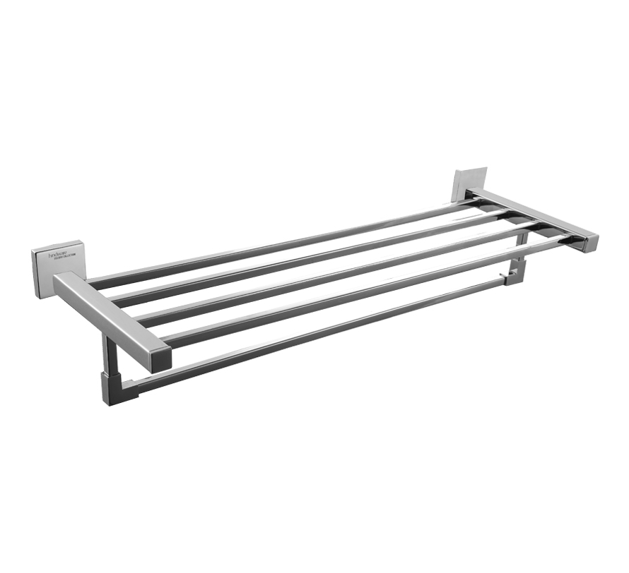 Stylish utility that maximizes bathroom space. The Hindware Towel Rack offers a sleek way to store, air, and organize towels—perfect for modern living. Multi-Function Design : Combines a towel hanger with a flat rack shelf for added convenience. Premium Chrome Finish : Rust-resistant surface retains its brilliance over time. Sturdy Construction : Built to hold multiple towels with stable wall-mounted support.
