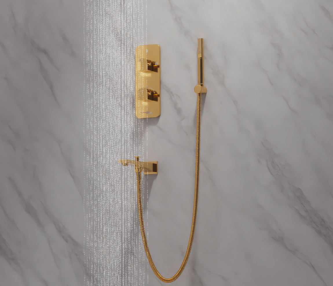 Yes — every order ships with a GST + HSN tax invoice. Add your business GSTIN at checkout (or save it on your account) to claim Input Tax Credit. HSN code for Hand Shower Round - Gold: 521469-config.