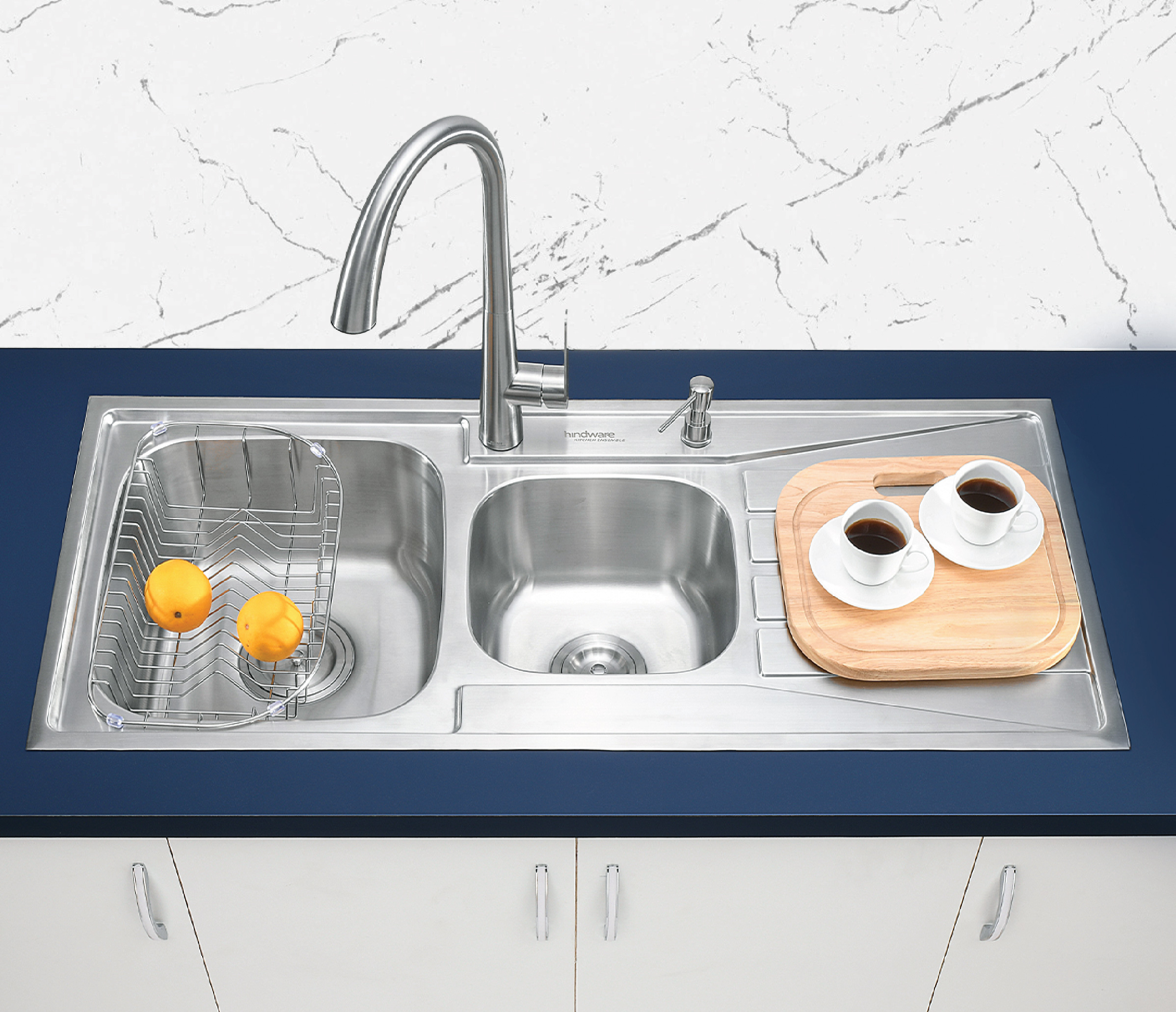 AISI 304 Grade Steel : Exceptional durability and rust resistance ensure a hygienic, long-lasting, and stylish sink that stands the test of time. Dual Sound Absorption: High-quality, sound-deadening pads dramatically reduce noise and vibrations, making your sink exceptionally quiet for a more peaceful kitchen. Multipurpose Accessories: Integrated accessories transform your sink into a versatile workstation which includes Chopping Board, Basket, Pullout Mixer, Soap Dispenser, Bottle trap connector. Clean Drain Coupling: Our sink's coupling includes a small basket to filter food waste, making your washing process more hygienic and cleanup effortless.