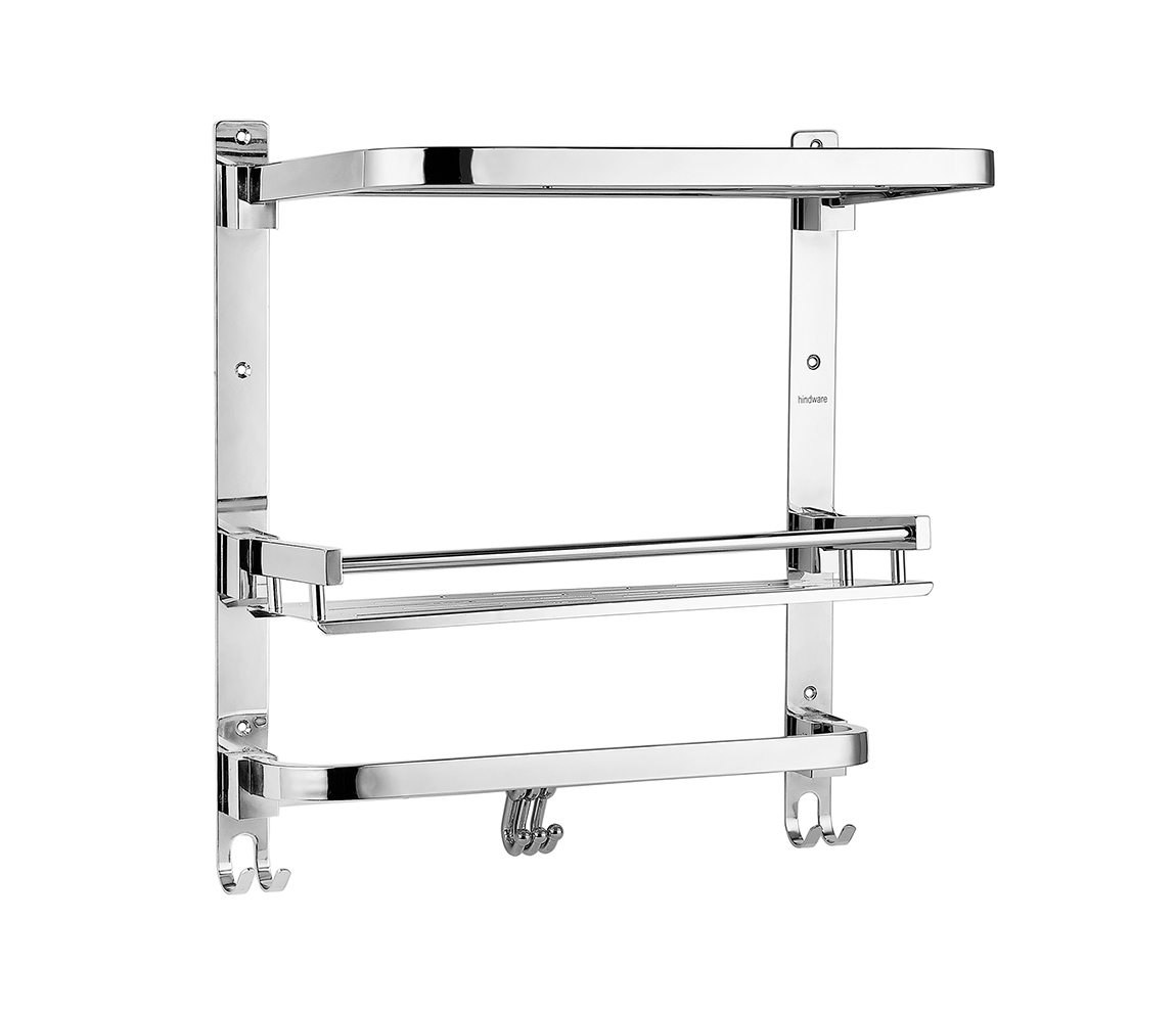 Add practical storage to your bath space with Hindware Italian Collection Multipurpose 3 Layers Foldable Shelf — a clean, wall-mounted vanity shelf that keeps essentials organized and within easy reach. • Triple-Shelf Capacity : Vertical, three-shelf layout neatly holds bottles, soaps, and accessories for a clutter-free setup. • Stainless-Steel Build : Corrosion-resistant construction stands up to daily humidity and wear in bathrooms. • Wall-Mounted Installation : Frees up counter space and fits seamlessly beside mirrors or above basins. • Heavy-Duty Design : Sturdy shelves provide dependable support for everyday use, with an easy-to-wipe finish.
