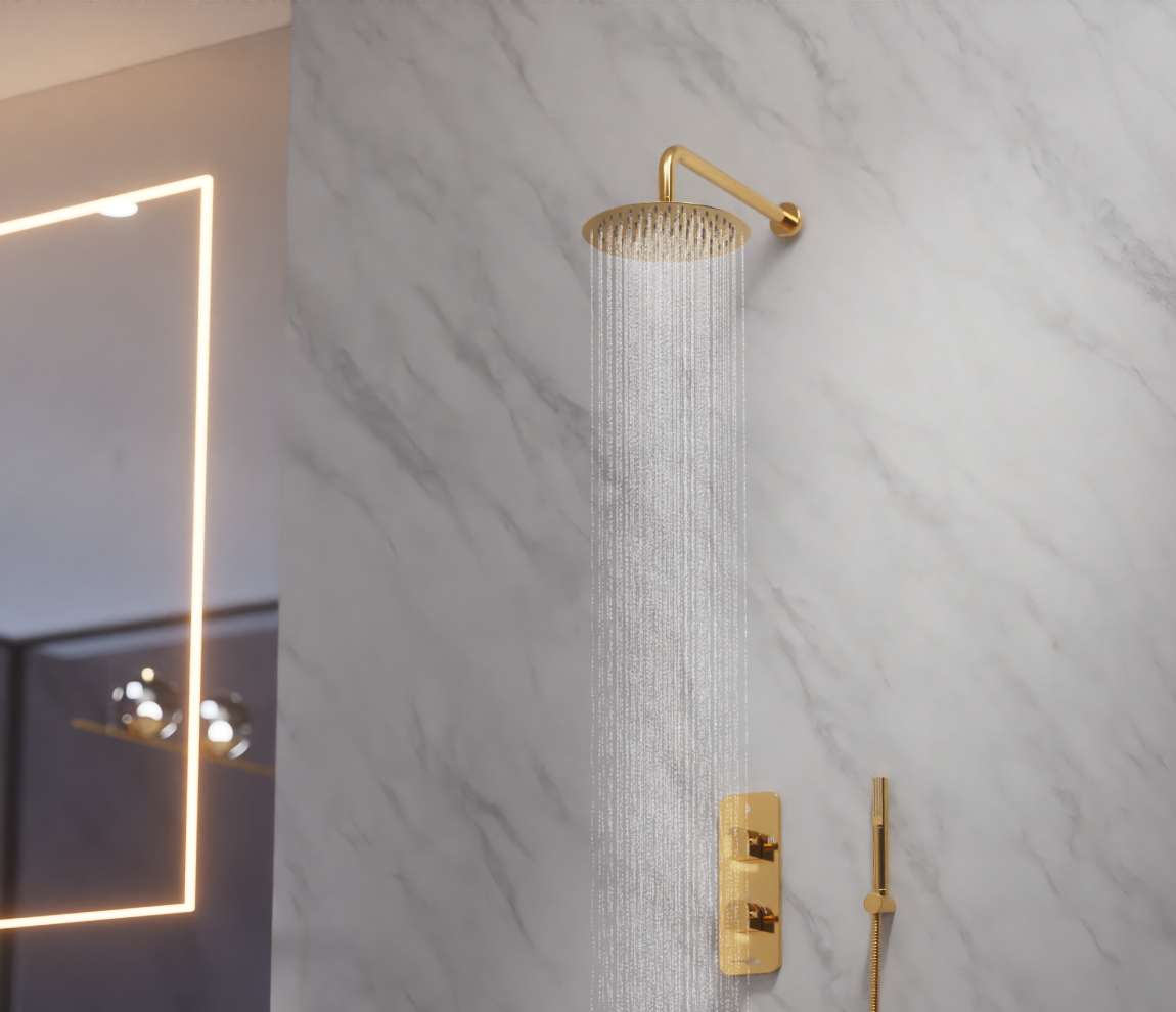 Yes — every order ships with a GST + HSN tax invoice. Add your business GSTIN at checkout (or save it on your account) to claim Input Tax Credit. HSN code for Overhead Shower 200 mm Round - Gold: 523230-config.