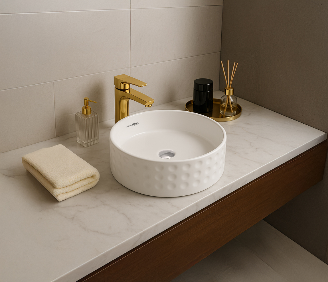 Rene Over The Counter Basin by Hindware is currently priced at ₹7190 on Build Bharat Mart, including all taxes. Free delivery applies on orders above ₹999; below that, ₹30 standard shipping.