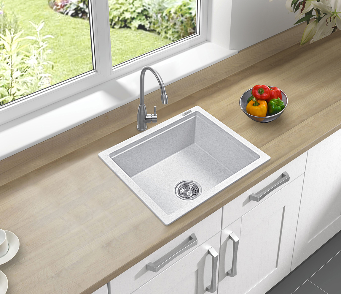 Each unique sink is a work of art. Meticulously crafted by artisans, they blend custom design with exceptional durability and modern style Dual Sound Absorption: High-quality, sound-deadening pads reduce noise and vibrations for a more peaceful kitchen. Clean Drain Coupling: A small basket filters food waste, making your washing process more hygienic and cleanup effortless. Scratch Resistant: Engineered to withstand daily use, this surface powerfully resists scratches, ensuring a flawless look that lasts for years Heat Resistant: Designed to handle high temperatures, our surfaces resist heat damage, maintaining their pristine condition even with hot pots and pans Matt Finish: A subtle and sophisticated look, perfect for a modern, minimalist kitchen aesthetic.