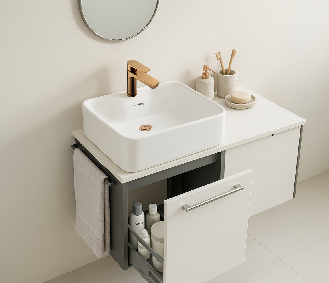 Yes — every order ships with a GST + HSN tax invoice. Add your business GSTIN at checkout (or save it on your account) to claim Input Tax Credit. HSN code for Vasca Over The Counter Basin: 9106610SW.